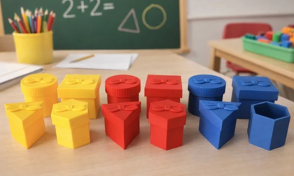Breng rekenen en spel samen met deze kleurrijke geometrische cadeaudoosjes. spelenderwijs kennismaken maken met vormen, sorteren en tellen.