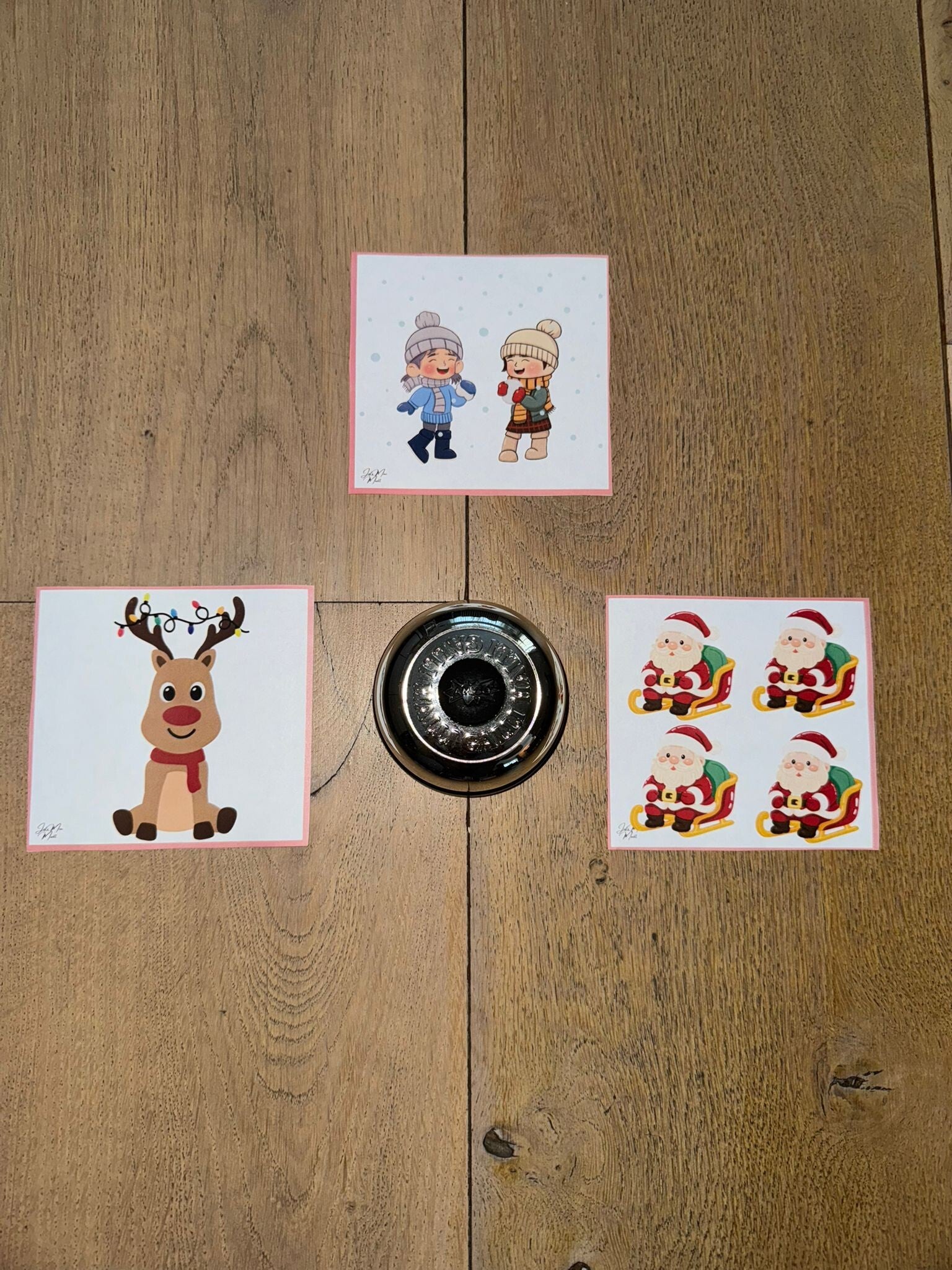 - Optie 3 Prentenmatch: kleuters draaien om de beurt een kaartje om; bij twee dezelfde prenten drukken ze op de bel. De snelste speler wint de kaartjes.